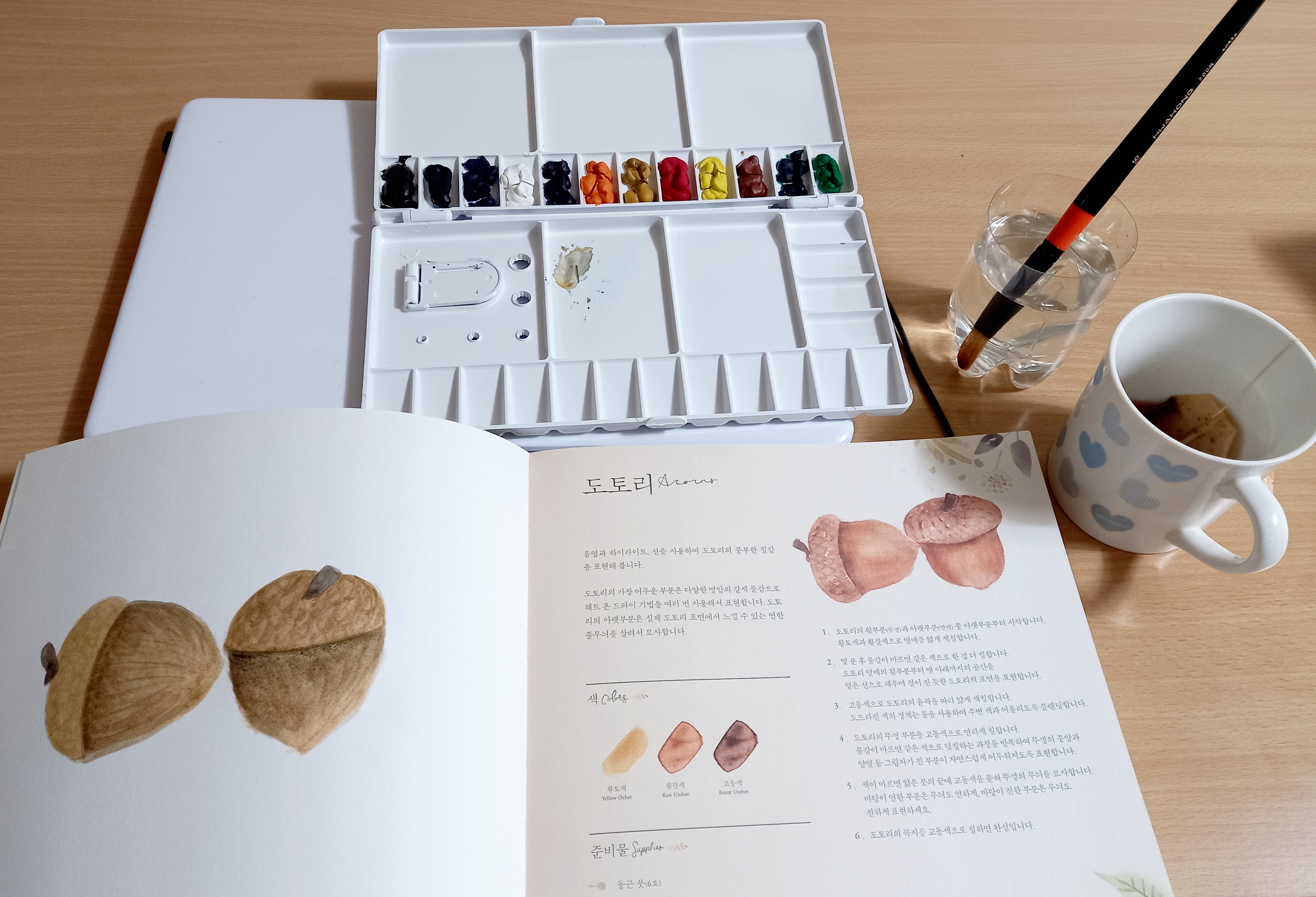 The sample in the book and my painting are very different, but I'm satisfied that I've finished one page of the book for the first time.