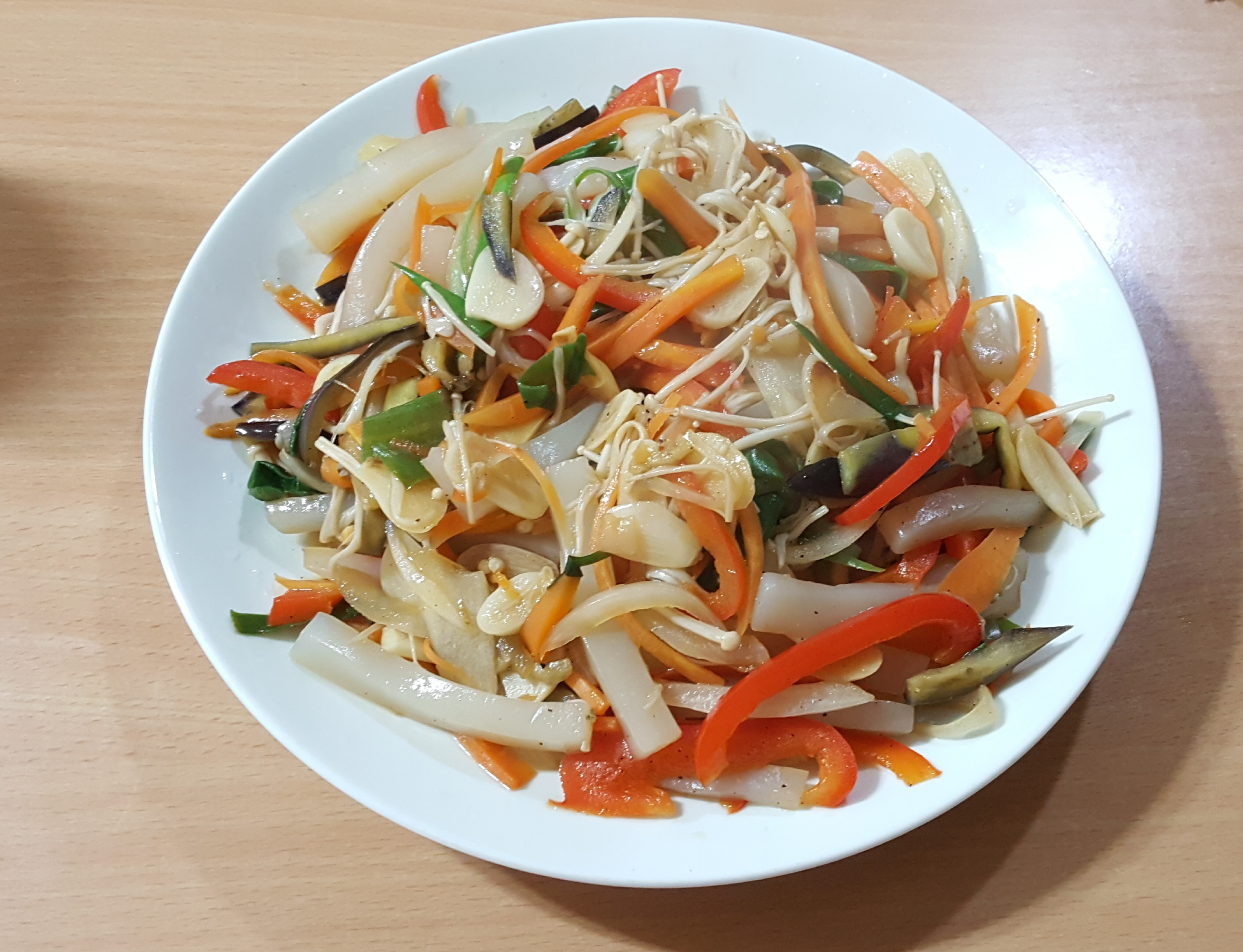 3. 딱딱한 순서대로 당근부터 야채를 넣고 볶는다. (내가 넣은 것은 당근, 가지, 양파, 파, 파프리카, 팽이버섯)